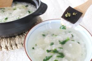 山椒入り塩昆布。さわやかな青い山椒と肉厚な塩昆布を合わせたもの。あっさりとした炊きあがりでご飯がすすみます。
