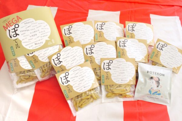 大きなパッケージの中に、通常サイズのぽて昆が10袋入っています。